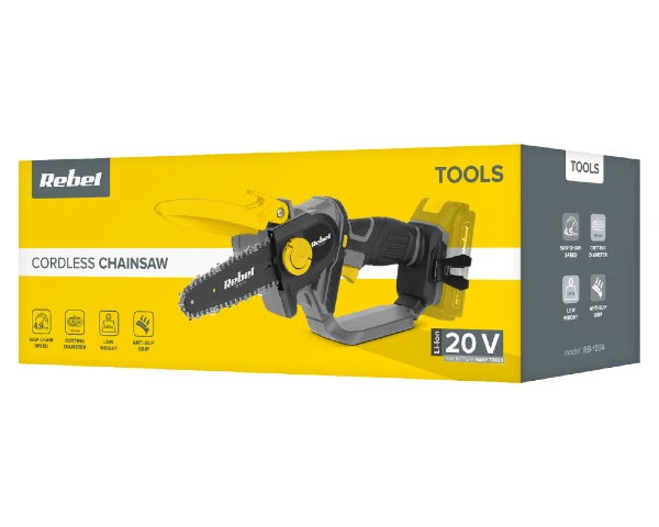 Mini pilarka akumulatorowa Rebel jest zaprojektowana w taki sposób, aby zapewnić swobodę obsługi podczas przycinania drzew i gałęzi. Urządzenie zostało wyposażone w wytrzymały, ale jednocześnie lekki korpus, co sprawia, że jest łatwa do przenoszenia. Dzięki temu narzędziu możesz swobodnie manewrować wśród gęstych gałęzi i osiągnąć precyzyjne cięcia.