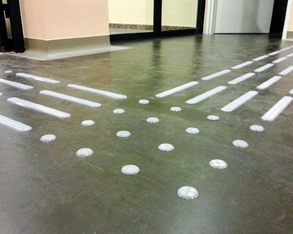 Nie. Nasze rozwiązania pozwalają instalować oznaczenia bez potrzeby wymiany czy przebudowy miejsc, w których mają być zastosowane. Montowane są w sposób nieinwazyjny za pomocą kleju, taśmy antypoślizgowej lub w sposób trwały przy pomocy wkrętów. Oznakowania dotykowe można montować na różnego rodzaju istniejących już nawierzchniach taki jak beton, płytki ceramiczne, asfalt, podłoga drewniana i wiele innych powierzchni. Montaż ma minimalny wpływ na pracę personelu, pieszych czy naszych klientów, ponieważ po pinezkach dotykowych wstępnie można chodzić zaraz po instalacji, a przy pełnym obciążeniu po 24 godzinach. Oznacza, to że można je łatwo wbudować w praktycznie każdy budynek bez uszczerbku dla kreatywnego projektowania i architektury.