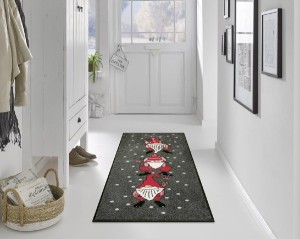 Chodnik ozdobny do przedpokoju z motywem świątecznych skrzatów. Mata wejściowa idealnie wprowadza wszystkich w świąteczny nastrój już od progu. Zatrzymuje zimowe zabrudzenia i pozostaje stabilna dzięki antypoślizgowemu spodowi.