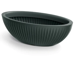 Doniczka owalna z serii Latia Oval to wyrafinowane połączenie eleganckiego koloru i harmonijnego kształtu. Delikatnie żłobione ścianki i klasyczna forma sprawiają, że niska donica Latia Oval podkreśli charakter wnętrza lub wystroju ogrodu. Stonowany kolor antracytowy uwydatnia matowe wykończenie doniczki na kwiaty. Misa na kwiaty to nie tylko estetyczny element wystroju wnętrz, ale przede wszystkim praktyczne rozwiązanie w uprawie roślin. Długość 58 cm i rozszerzany ku górze kształt donicy ogrodowej, zapewniają korzeniom miejsce na rozrost. Solidna podstawa sprawia, że donica Latia Oval stabilnie utrzyma zarówno niskie, jak i wysokie rośliny.