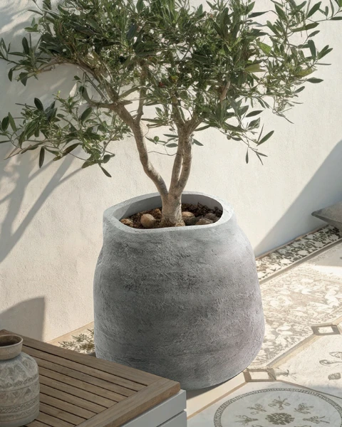 Donica idealnie nadaje się do większych roślin ozdobnych, takich jak drzewka bonsai, oliwki europejskie, niskie krzewy czy kompozycje z traw ozdobnych.