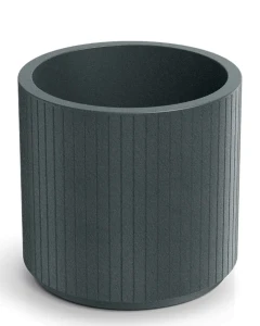 Doniczka okrągła z serii Coro Round to wyrafinowane połączenie eleganckiego koloru i harmonijnego kształtu. Delikatnie żłobione ścianki i klasyczna forma sprawiają, że stylowa doniczka Coro Round podkreśli charakter wnętrza lub wystroju ogrodu. Grafitowy kolor został podkreślony przez matowe wykończenie doniczki na kwiaty. Osłonka na doniczkę to nie tylko estetyczny element wystroju wnętrz, ale przede wszystkim praktyczne rozwiązanie w uprawie roślin w domu. Doniczka ogrodowa ma dużą średnicę i obły kształt. Obie te cechy zapewniają korzeniom miejsce na rozrost. Solidna podstawa sprawia, że donica Coro Round stabilnie utrzyma zarówno niskie, jak i wysokie rośliny.
