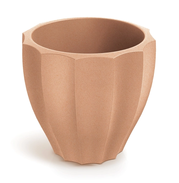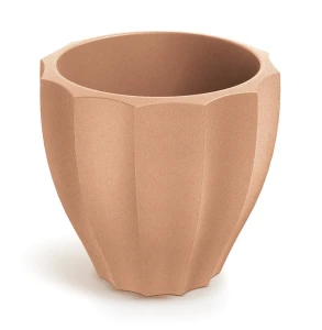Rona to nowoczesna donica o nietypowym kształcie, zwężająca się ku dołowi i ozdobiona głębokimi, pionowymi żłobieniami. Dzięki szerokim krawędziom i masywnej sylwetce zyskuje wizualną stabilność, która doskonale wpisuje się w charakter przestrzeni zewnętrznych. Jej dopracowana forma i szlachetna faktura czynią ją idealnym wyborem do eleganckich aranżacji z roślinami.
