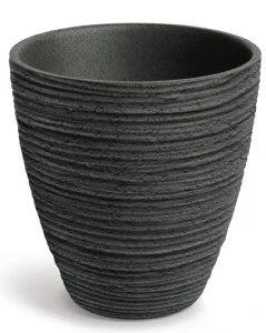 Donica dekoracyjna okrągła o średnicy 60 cm w kolorze węglowym czarnym Defora - ozdoba Twojej rośliny z poziomymi żłobieniami imitująca naturalny materiał