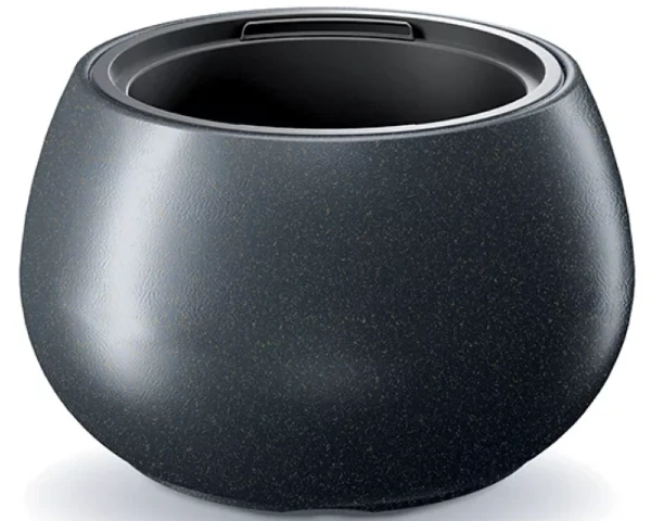 Donica okrągła 32 l z wkładem 11 l w kolorze antracytowym. Przyjazna dla środowiska okrągła doniczka na taras, balkon lub do domu. Donica mrozoodporna jest wykonana z lekkiego tworzywa sztucznego zawierającego 33% drewna.