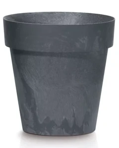 Donica okrągła o średnicy 30 cm i wysokości 26,6 cm. Donica Prosperplast jest wykonana z solidnego tworzywa sztucznego, które imituje wygląd betonu. Doniczka w kolorze antracytowym nadaje się w 100% do recyklingu.