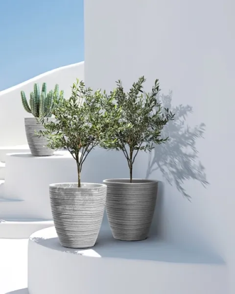 Donica Defora marki Ethick to klasyczna donica o zwężającym się ku dołowi kształcie i dekoracyjnych, poziomych żłobieniach, które tworzą efektowną, trójwymiarową strukturę inspirowaną naturalnym kamieniem. Doskonale sprawdza się jako elegancki akcent w przestrzeniach zewnętrznych i wewnętrznych – na tarasach, w biurach czy hotelowych lobby. Wykonana z trwałego tworzywa sztucznego, odporna na czynniki atmosferyczne i uszkodzenia, łączy estetykę z funkcjonalnością.