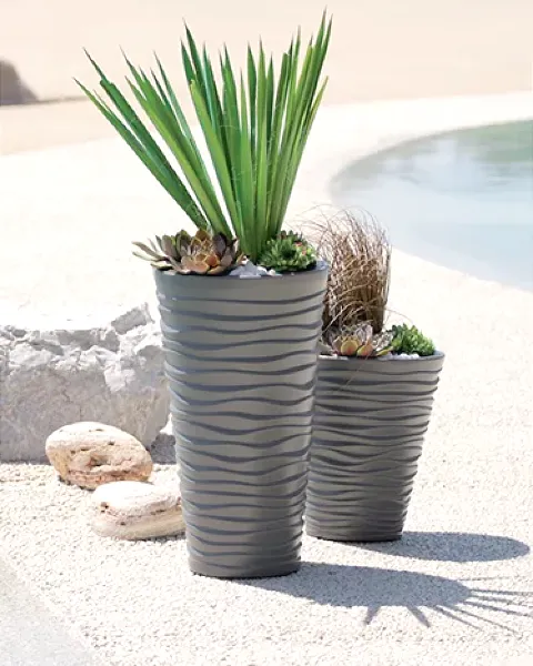 Donica wysoka w kolorze antracytowym posiadająca poziome, pofalowane żłobienia, dzięki którym doskonale nadaje się do aranżacji nowoczesnych wnętrz. Donica mrozoodporna o wysokości 75 cm jest także odporna na ujemne temperatury, dzięki którym może stać na zewnątrz przez cały rok. Dodatkowo została wykonana z wysokiej jakości materiałów, które sprawiają że jej kolor nie wyblaknie pod wpływem słońca. Donica sprzedawana jest w zestawie z wkładem o pojemności 18 litrów, w którym można samodzielnie nawiercić otwory drenażowe. Pozwala to odprowadzić nadmiar wody, a tym samym uniknąć przelania rośliny. Wkład do donicy ułatwia także przeprowadzenie zabiegów pielęgnacyjnych oraz pozawala na szybką zmianę aranżacji. Donica Prosperplast doskonale sprawdzi się m.in. w dużych ogrodach oraz we wnętrzach hoteli, restauracji i salonów samochodowych.