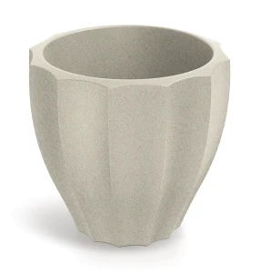 Rona to nowoczesna donica o nietypowym kształcie, zwężająca się ku dołowi i ozdobiona głębokimi, pionowymi żłobieniami. Dzięki szerokim krawędziom i masywnej sylwetce zyskuje wizualną stabilność, która doskonale wpisuje się w charakter przestrzeni zewnętrznych. Jej dopracowana forma i szlachetna faktura czynią ją idealnym wyborem do eleganckich aranżacji z roślinami.