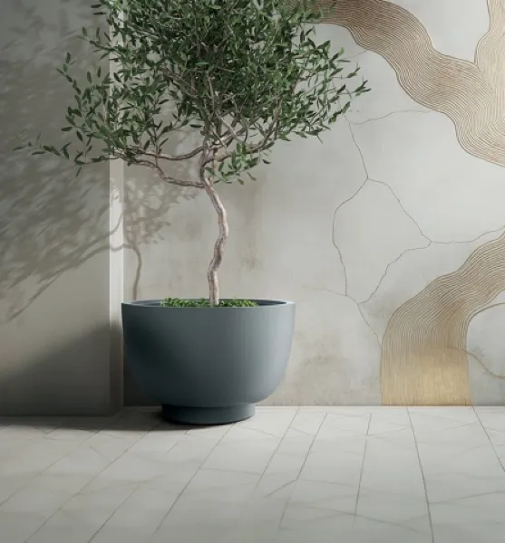 Donica Vemo Round Midl od marki ETHICK to oryginalna forma inspirowana kształtem kielicha z subtelną, niską podstawą. Jej elegancka sylwetka oraz naturalna faktura sprawiają, że harmonijnie współgra z roślinnością i nowoczesnym otoczeniem. To stylowy i trwały dodatek do wnętrz i przestrzeni zewnętrznych.