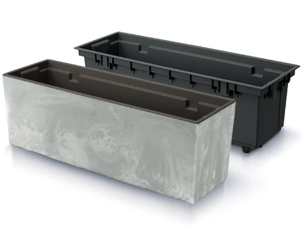 Doniczka Prosperplast Urbi Case DUC800E-422U to harmonijne połączenie surowego, industrialnego stylu z lekkością nowoczesnych materiałów. Dzięki długości 77 cm i unikalnej strukturze imitującej naturalny beton, model ten stanowi doskonałą alternatywę dla ciężkich donic cementowych. Matowe, szare wykończenie idealnie wpisuje się w estetykę loftową, skandynawską oraz nowoczesne aranżacje ogrodowe, nadając im prestiżowego charakteru.