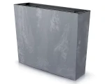 Donica podłużna w kolorze marengo podkreśla piękno ulubionych okazałych roślin. Jest doskonała do roślinnych aranżacji tworzących naturalne ściany. Skrzynia na kwiaty dzięki swojej prostokątnej budowie dobrze wygląda postawiona wzdłuż ściany. Można ją również wykorzystać do dzielenia przestrzeni na mniejsze strefy. Na przykład oddzielając strefę wypoczynkową od aneksu kuchennego. Charakterystyczna faktura imitująca beton architektoniczny przyciąga wzrok i nadaje kompozycji eleganckiego charakteru. Duża donica Prosperplast Urbi ładnie prezentuje się zarówno w domu, ogrodzie jak i w strefie publicznej, np.: w restauracji, poczekalni lub w bibliotece.