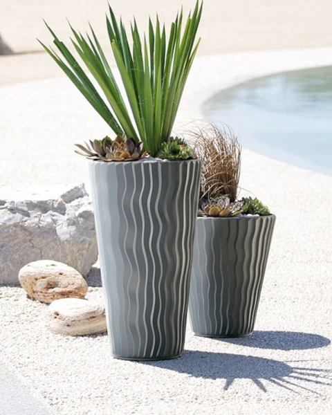 Donica wysoka Sandy Slim sprzedawana w komplecie z wkładem, który ułatwia zabiegi pielęgnacyjne. Donicę Prosperplast można z powodzeniem zastosować zarówno w domu, jak i na zewnątrz.
