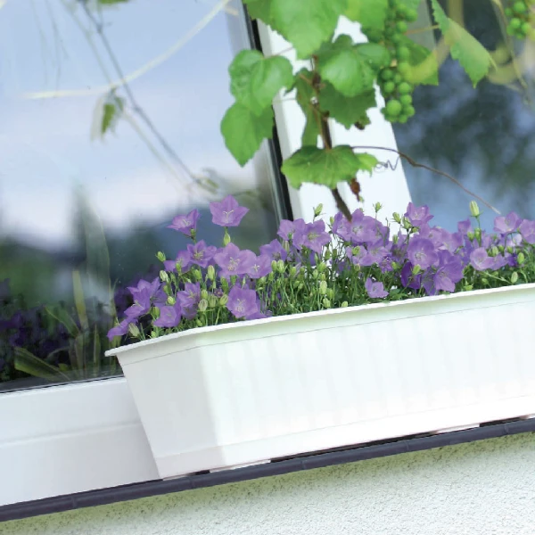Skrzynka balkonowa jest bardzo stabilna a jej ścianki nie wyginają się na zewnątrz lub do środka. Doniczka na balustradę posiada zwiększoną odporność na uszkodzenia mechaniczne, co przekłada się bezpośrednio na dłuższą eksploatację. Polipropylen to lekki materiał, więc przenoszenie skrzynki balkonowej nie sprawia problemu - doniczka waży jedynie 290 g! Dodatkowo tworzywo jest wytrzymałe i odporne na działanie promieni słonecznych, dzięki czemu skrzynka balkonowa nie blaknie i długo zachowuje swój kolor. Możemy w niej sadzić roślin, które mają zdobić naszą przestrzeń przez cały rok. Do zawieszania doniczki na balustradzie potrzebujesz minimum dwóch haków. Dedykowanymi hakami dla wszystkich skrzynek Balcony Can są haki haczyki metalowe Agrohang oraz haczyki plastikowe HangPlast.