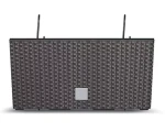 Doniczka wisząca na balustradę Rato Case W jest doskonała do aranżacji kwiatowych z surfinii, petunii, pelargonii lub supertunii. Skrzynka na balkon podkreśli urok zielonych roślin zwisających takich jak bluszcz, komarzyca i dichondra. Charakterystyczna ozdobna faktura rattanowej plecionki przyciąga wzrok i nadaje kompozycji eleganckiego charakteru. Doniczkę prostokątną można powiesić na poręczy lub balustradzie na tarasie, balkonie lub na ogrodzeniu. Szerokość poręczy nie może przekraczać 8 centymetrów. Doniczka podłużna świetnie wygląda postawiona na parapecie.