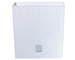 Doniczka ozdobna z imitacją ratanu w kolorze białym - odpowiednia do większych roślin