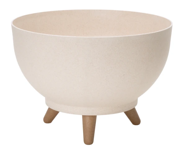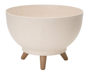 Doniczka okrągła Satina Eco Wood swój naturalny wygląd zawdzięcza domieszce drewna. Doniczka niska ma gładkie, matowe ścianki, które wyróżniają się widocznymi drobinkami drewna. Naturalny urok drewna dodaje wnętrzom ciepła i spokojnego charakteru, dlatego misa Satino Eco Wood sprawdzi się nie tylko w sypialni czy salonie, ale także w biurze. Doniczka misa stoi na trzech drewnopodobnych mocnych nóżkach, dzięki którym jest stabilna nawet przy wysokich roślinach. Dzięki zastosowaniu trwałego tworzywa, ścianki doniczki okrągłej Satina nie odkształcają się i zapewniają roślinom solidną podstawę. Doniczka misa Satina Eco Wood jest łatwa w utrzymaniu czystości, można ją myć pod bieżącą wodą.