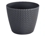 Doniczka okrągła Prosperplast Splofy w kolorze antracytowym - imitacja splotu włóczki