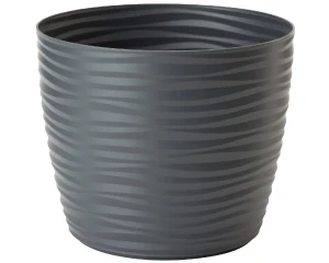 Doniczka okrągła Sahara Petit Round zawdzięcza swoją nazwę delikatnym tłoczeniom, które przypominają falujące piaski pustyni. Stonowany kolor antracyt i klasyczny kształt, sprawiają że doniczka na kwiaty ma uniwersalny styl. Doniczka Sahara to nie tylko estetyczny element wystroju wnętrz, ale przede wszystkim praktyczne rozwiązanie w uprawie roślin w domu. Osłonka na doniczkę ma dużą średnicę i rozszerzany ku górze kształt, które zapewniają korzeniom miejsce na rozrost. Solidna podstawa sprawia, że donica Sahara Petit stabilnie utrzyma zarówno niskie, jak i wysokie rośliny.