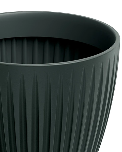 Doniczka okrągła w kolorze antracytowym Latia Round z kolekcji Ethick. Duża donica wykonana z matowego tworzywa z delikatnie żłobionymi ściankami. Klasyczny kształt doniczki na kwiaty wyeksponuje ulubione rośliny w domu lub ogrodzie.