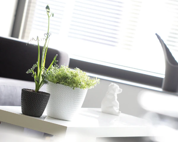 Doniczka jest wykonana z gładkiego, nieporowatego tworzywa. Jeśli osądzi się na niej kurz, wystarczy przetrzeć ją wilgotną ściereczką – zabrudzenia nie wnikają w materiał.