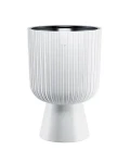 Doniczka Keli Mika to coś więcej niż pojemnik na rośliny - to kompletny, wolnostojący element dekoracyjny. Dzięki zintegrowanym nóżkom, konstrukcja nabiera lekkości i wynosi Twoją zieleń na wyższy poziom, doskonale eksponując rośliny zwisające oraz wysokie okazy. Charakterystyczna dla serii Mika prążkowana struktura w kolorze nieskazitelnej bieli wnosi do wnętrza powiew świeżości i skandynawskiego minimalizmu. To idealny wybór dla tych, którzy chcą stworzyć domową dżunglę z klasą.