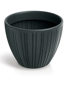 Doniczka okrągła w kolorze grafitowym Fero Round. Doniczka dekoracyjna wykonana z wytrzymałego tworzywa. Klasyczny kształt doniczki na kwiaty wyeksponuje ulubione rośliny w domu lub ogrodzie.