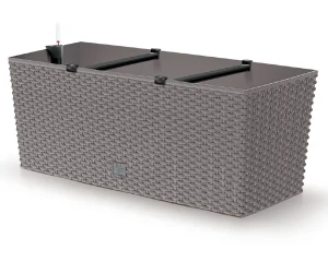 Rośliny dodają stylu wnętrzom i bez wątpienia są największymi ozdobami ogrodu. Nie można jednak zapomnieć o ich odpowiedniej prezentacji. Doniczka Rato Case doskonale prezentuje się w otoczeniu domu, na tarasach i balkonach. To także elegancka dekoracja w biurze, restauracji czy poczekalni. Skrzynka Rato przypomina fakturą plecionkę rattanową. Dzięki temu można ją dopasować praktycznie do każdego wystroju wnętrza. Świetnie pasuje zarówno do pomieszczeń, w których rządzi nowoczesny design, jak i tych urządzonych tradycyjnie. Rattanowa tekstura doniczki wykonana jest z precyzją i starannością o detale. Wyprodukowana z najwyższej jakości tworzywa sztucznego, charakteryzuje się wysoką odpornością na uszkodzenia mechaniczne. Nie straszne jej jest zarówno działanie promieni słonecznych jak i wody, dzięki czemu doskonale sprawdzi się do sadzenia roślin, które mają zdobić naszą przestrzeń przez cały rok. Doniczka podłużna Rato nie blaknie i długo zachowuje swój kolor oraz estetyczny wygląd. Wewnątrz donicy znajduje się wkład nawadniający, który ułatwia pielęgnację. Aranżacja roślinna z donicą Rato Case będzie przez długi czas zachwycać i inspirować zarówno domowników, jak i gości.