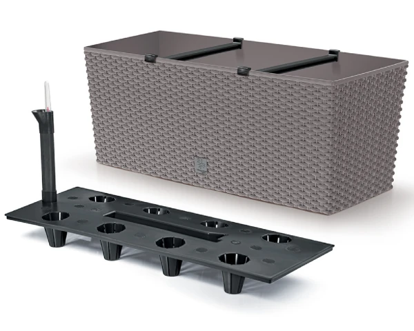 Doniczka podłużna z systemem nawadniania w kolorze mocca Rato Case - piękny wygląd i łatwa pielęgnacja