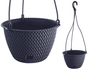 Antracytowa doniczka wisząca Prosperplast Splofy Bowl to synonim nowoczesnej elegancji połączonej z przytulnym designem. Doskonale sprawdza się na tarasie lub balkonie. Wykonana z trwałego tworzywa, przyciąga wzrok unikalną strukturą przypominającą gruby, mięsisty splot wełny. Głęboki, ciemnoszary kolor nadaje jej wyrafinowanego charakteru, sprawiając, że staje się wyrazistym punktem każdej aranżacji.