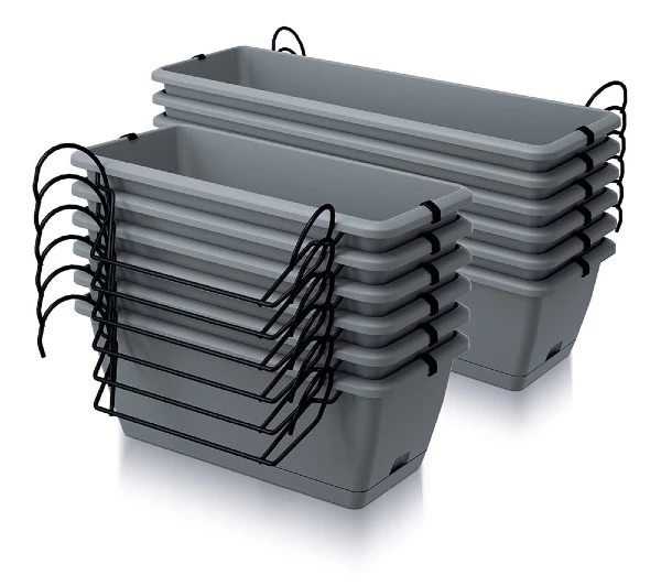 - Wszechstronne zastosowanie: Idealna do uprawy popularnych kwiatów balkonowych (pelargonii, begonii), ziół, a nawet miniaturowych warzyw. Może być używana jako skrzynka wisząca (uchwyty w zestawie) lub stojąca.