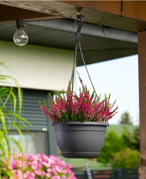 Doniczka wisząca w kolorze antracytowym z podstawką Malta - kwitnąca przestrzeń wokół Ciebie