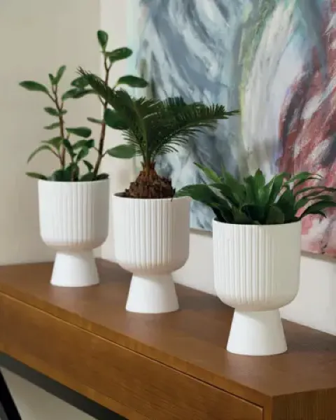 - ✓ Struktura Mika: Pionowe żłobienia nadają doniczce unikalny, rzeźbiarski charakter, który pasuje do wnętrz boho, loft i modern.