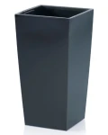 Donica kwadratowa Urbi Square o nowoczesnym, geometrycznym kształcie. Antracytowe matowe wykończenie ładnie podkreśla zieleń liści. Wysoka doniczka posiada wewnętrzny wkład o pojemności 2 litrów, który zapobiega przelaniu korzeni i zmniejsza ilość wykorzystywanego podłoża.
