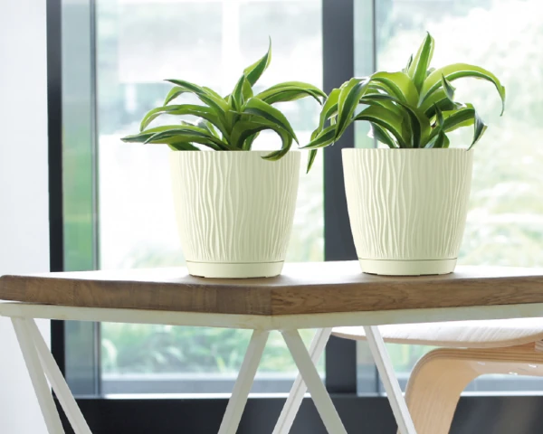 Doniczka Prosperplast Sandy P w kolorze kremowym to esencja delikatności i domowego ciepła. Jej powierzchnię zdobią pionowe, rytmiczne żłobienia, które w jasnym, matowym wydaniu nabierają szlachetnego wyrazu. Dzięki kompaktowym wymiarom i zintegrowanej podstawce na zatrzask, osłonka ta jest idealnym wyborem do rozjaśnienia biurka, kuchennego blatu czy wąskiego parapetu w salonie.