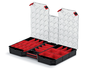 Duży wielofunkcyjny organizer warsztatowy na różnego rodzaju części jak m. in. śruby, wkręty, uszczelki czy gwoździe.