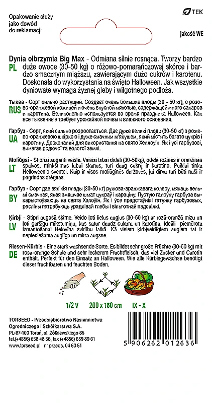 Dynia olbrzymia Bix-Max nasiona polskiej firmy Torseed