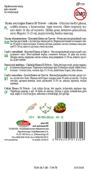 Cechy szczególne dyni zwyczajnej Cukinii Bianca Di Trieste Torseed: