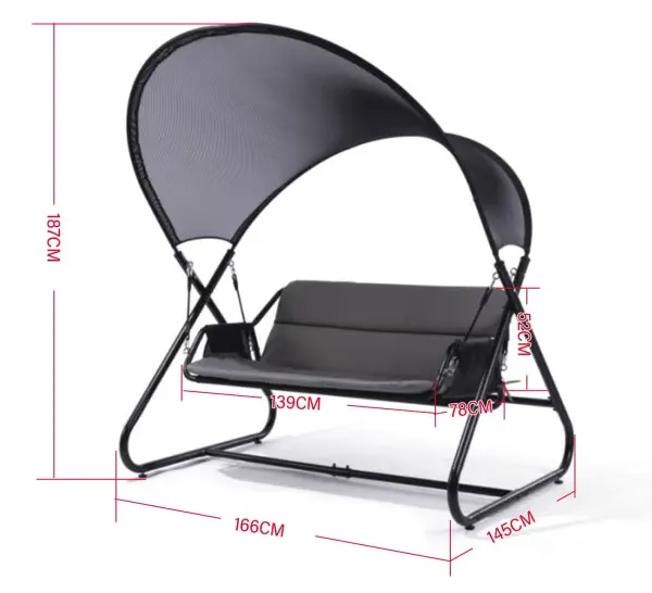 Huśtawka ogrodowa to doskonały sposób na chwilę relaksu na świeżym powietrzu. Siedzisko o szerokości 139 cm sprawia, że mogą na niej wygodnie usiąść dwie osoby dorosłe. Konstrukcja huśtawki została wykonana ze stali malowanej proszkowo, a daszek z polisetru. Dzięki temu huśtawka do ogrodu jest odporna na warunki atmosferyczne.