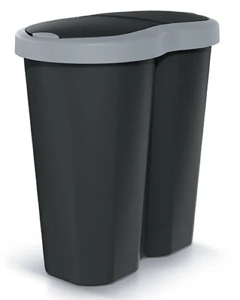 Keden Compacta R Duo to nowoczesny kosz na odpady papierowe, zaprojektowany z myślą o codziennej wygodzie i estetyce. Posiada jedną dużą komorę oraz dwie oddzielne pokrywy, które umożliwiają wygodny dostęp z różnych stron. Sprawdzi się idealnie jako śmietnik do segregacji odpadów, kuchenny, biurowy lub do pomieszczeń gospodarczych. Dzięki trwałemu materiałowi odpornemu na oleje, tłuszcze i alkohole, wyróżnia się wysoką odpornością i łatwością w czyszczeniu. Wbudowana ramka przytrzymująca worek zapobiega jego zsuwaniu i poprawia higienę użytkowania.