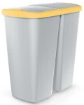 Kosz na śmieci na tworzywa sztuczne 45 litrów szary Compacta Q Duo z dwiema pokrywami i ramką na worek. Odporny na oleje, tłuszcze i alkohol – idealny do kuchni, biura lub pomieszczeń gospodarczych.