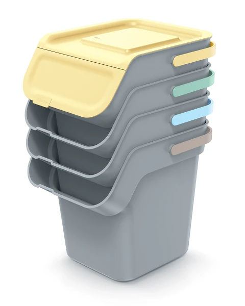 Kosze na śmieci polskiej marki Keden wykonane z solidnych i trwałych materiałów. Kupując kilka pojemników w różnych wersjach kolorystycznych można ustawić je jeden na drugim i stworzyć przestrzeń do segregacji odpadów, która nie zajmuje zbyt wiele miejsca.