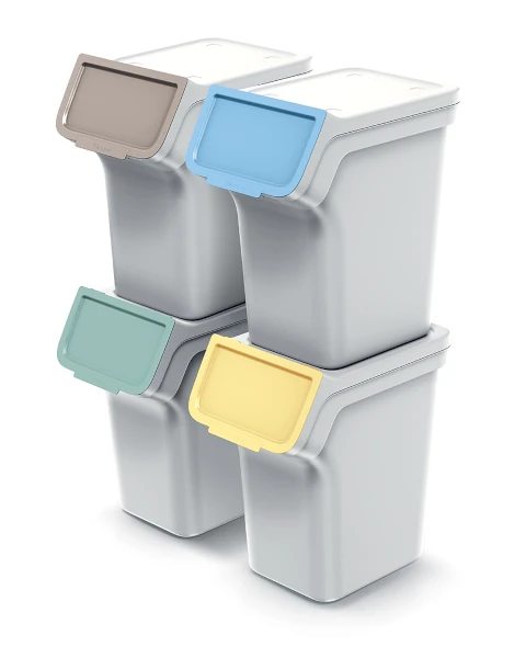 Kosz na śmieci z pokrywą 4 x 20 litrów szary Stackbox Q