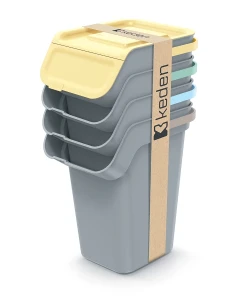 Kosze na śmieci polskiej marki Keden wykonane z solidnych i trwałych materiałów. Kupując kilka pojemników w różnych wersjach kolorystycznych można ustawić je jeden na drugim i stworzyć przestrzeń do segregacji odpadów, która nie zajmuje zbyt wiele miejsca.