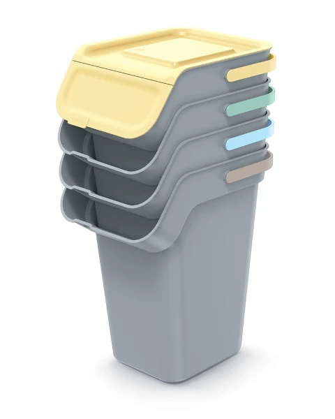Kosze na śmieci do kuchni, domu i biura o pojemności 4 x 25 litrów w kolorze szarym