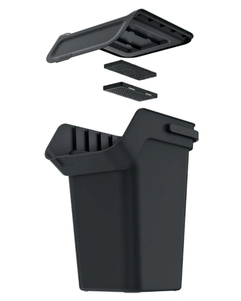 - filtr z węglem aktywnym: pochłania i neutralizuje nieprzyjemne zapachy (filtr jest wymienny i można go kupić w sekcji produkty powiązane)