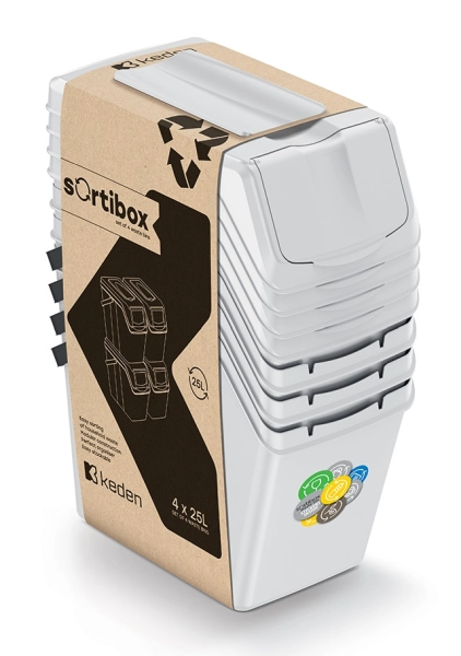 Zestaw pojemników na odpady w kolorze siwym 4 sztuki o pojemności 25 litrów każdy Sortibox marki Keden