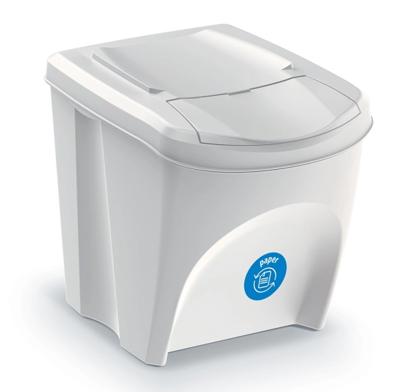 - w komplecie zestaw kolorowych naklejek z oznaczeniem rodzajów frakcji (papier, szkło, plastik/metal, organiczne, inne)