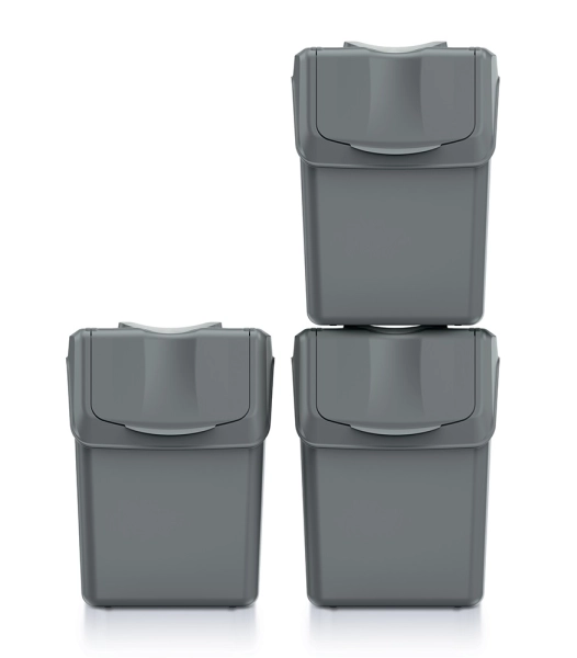 Kosze na śmieci do segregacji 3 x 20 litrów szare ciemne Sortibox