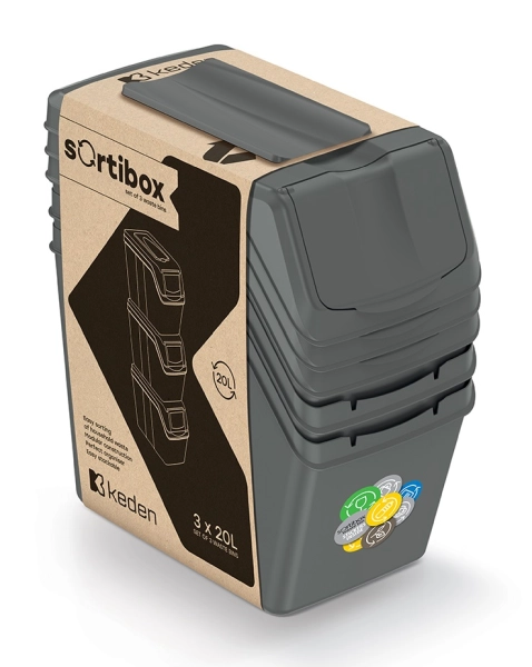 Zestaw pojemników na odpady w kolorze szarym kamiennym 3 sztuki o pojemności 20 litrów każdy Sortibox marki Keden